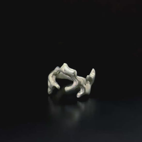 Anillo de formas orgánicas que evocan lo tribal y a la vez lo sutil. Con líneas fluidas ideal para quienes buscan una joya con carácter, pero fácil de llevar todos los días.