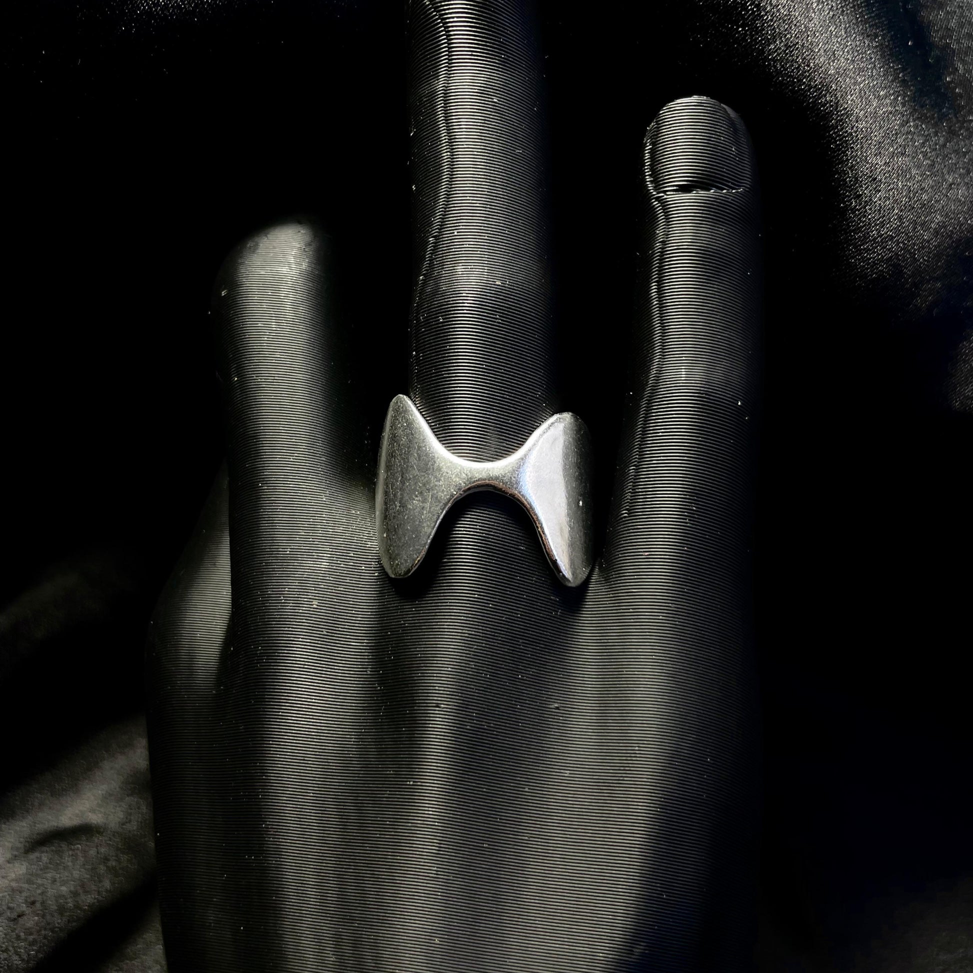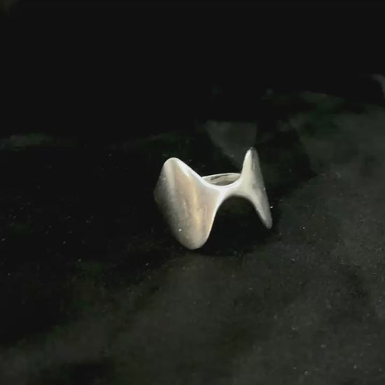 Anillo de plata hecho a mano que fusiona estilo urbano, industrial y minimalista. Inspirado en las ondas de sonido, su diseño transmite ritmo y movimiento.