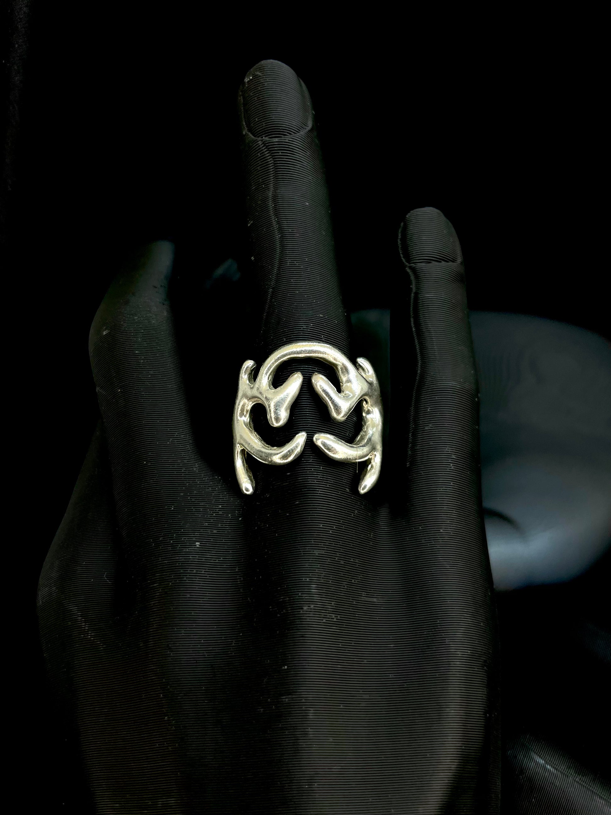 Anillo de líneas orgánicas con alma cruda. Inspirado en máscaras de guardianes de templo asiático. Protección y presencia en cada trazo.