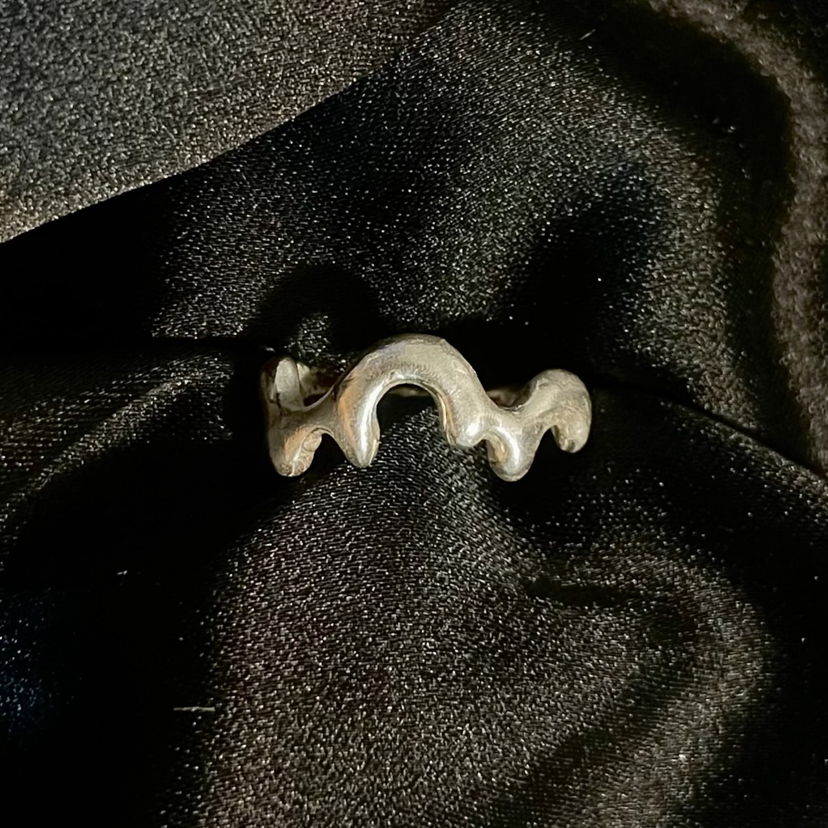 Este anillo hecho a mano fluye con forma libre, como una ola que no pide permiso. Simple. Distinto.