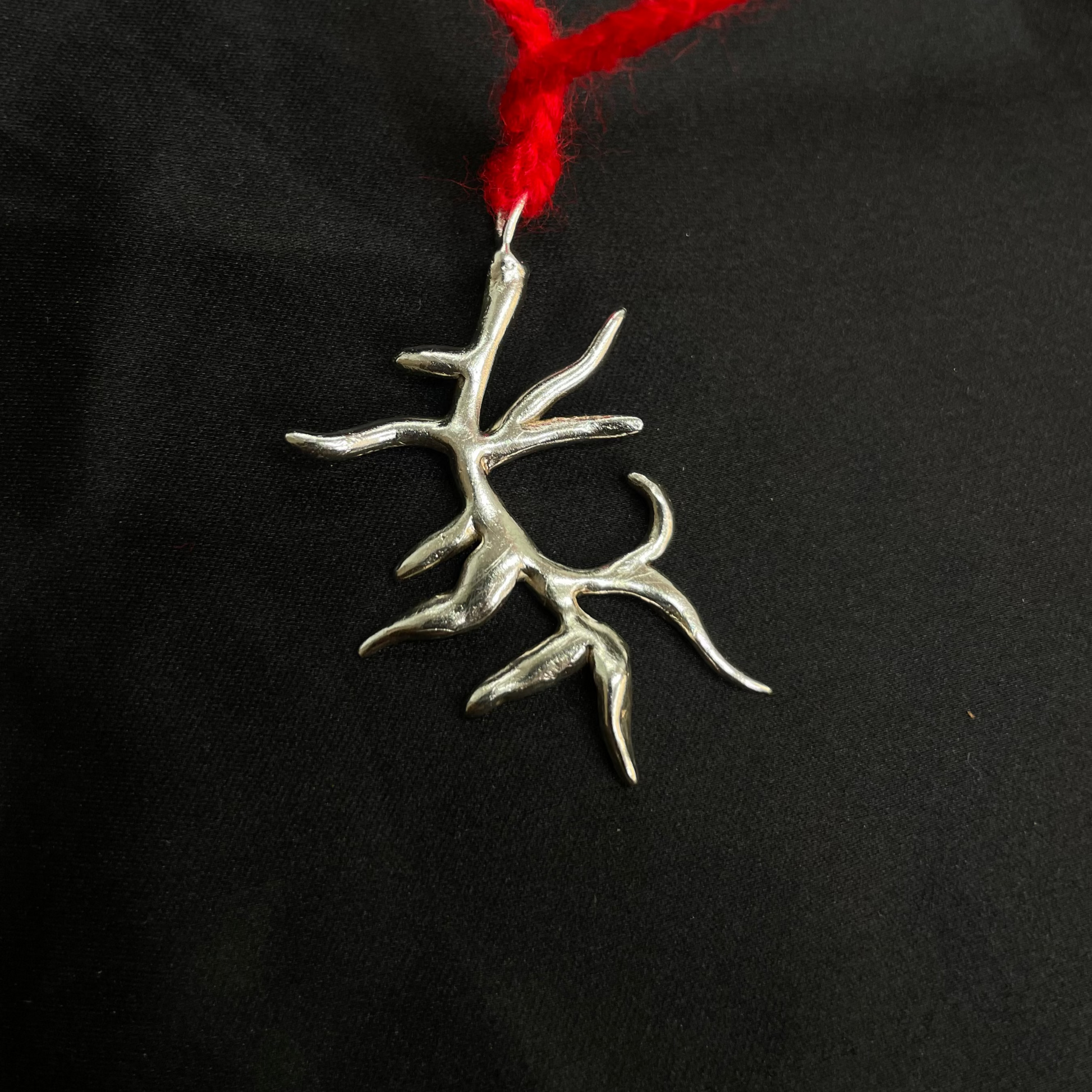 Colgante con presencia, de líneas góticas inspiradas en la fuerza salvaje del coral.